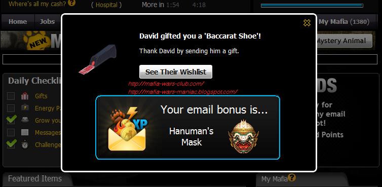 Now everytime we received email notification from Mafia Wars game, we will have a chance to get rewards..