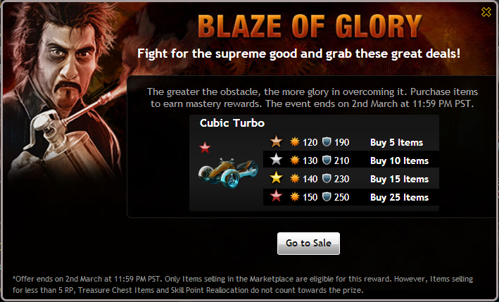 *Offer ends on 2nd March at 11:59 PM PST. Only Items selling in the Marketplace are eligible for this reward. However, Items selling for less than 5 RP, Treasure Chest Items and Skill Point Reallocation do not count towards the prize.